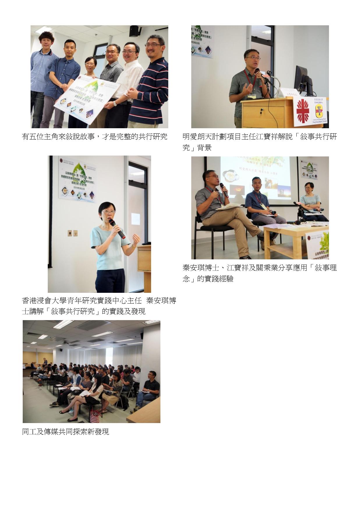 朗天研討會2014「敍事共行研究」經驗分享會 Posted on 2020-11-112020-12-28Author jfanswai以敍事理念,與「性侵犯者」探索持續對抗性侵犯的策略-「敍事共行研究」經驗分享暨發布會 (22/5/2014)