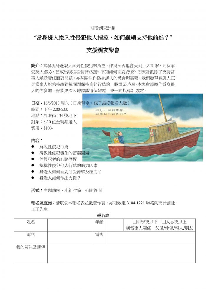 2018-6-16 當身邊人捲入性侵犯他人指控,如何繼續支持他前進? 支援親友聚會